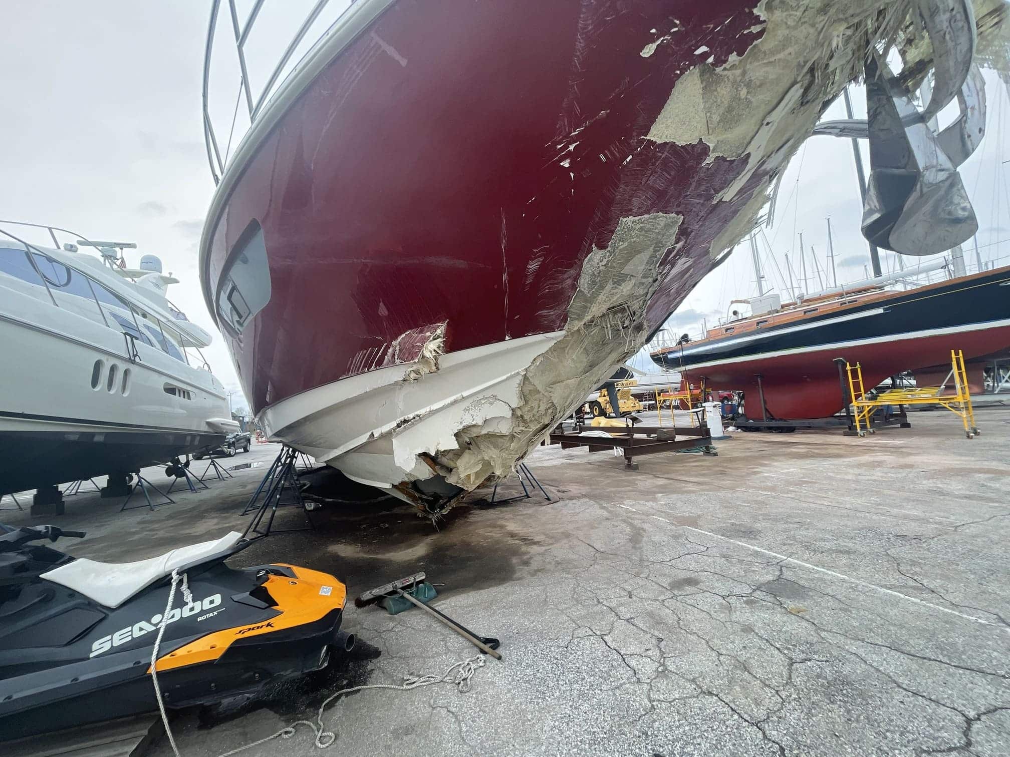 A luxury yacht was severely damaged after crashing into a breaker wall. The insurance company attempted to settle the insurance claim for just $1.1 million, undervaluing the true extent of the loss. Critical damages — including the electrical system, navigation equipment, engines, and custom interiors — were overlooked.