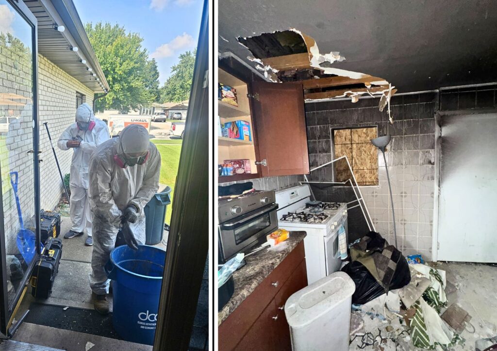 Cleanup doesn’t start with a rag, but with safety. First comes emergency response: boarding up windows, doors, and the roof to protect property from rain, animals, and trespassers. Next steps include: