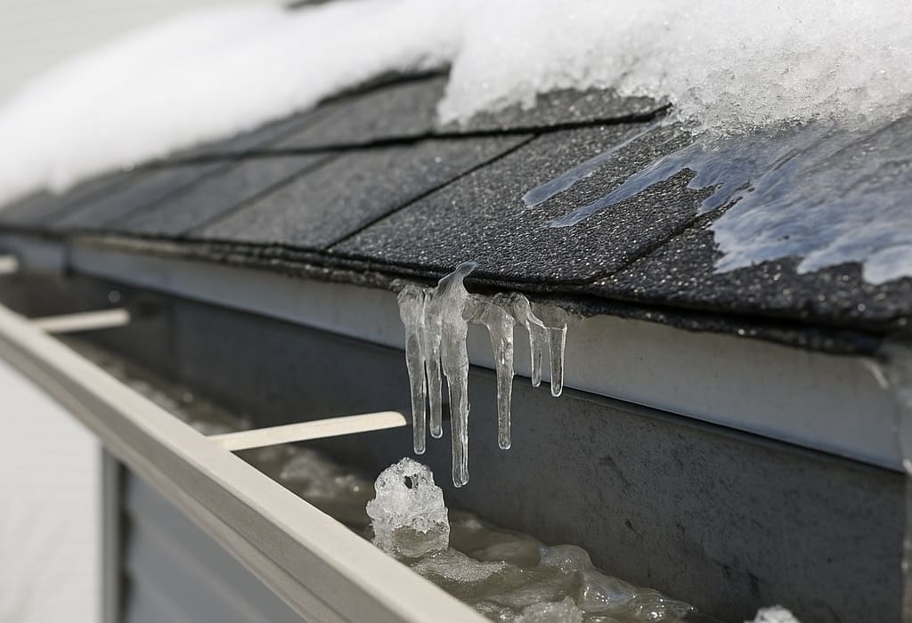 4. Ice sheets sliding off Falling ice chunks damage gutters, vents, and exterior walls.