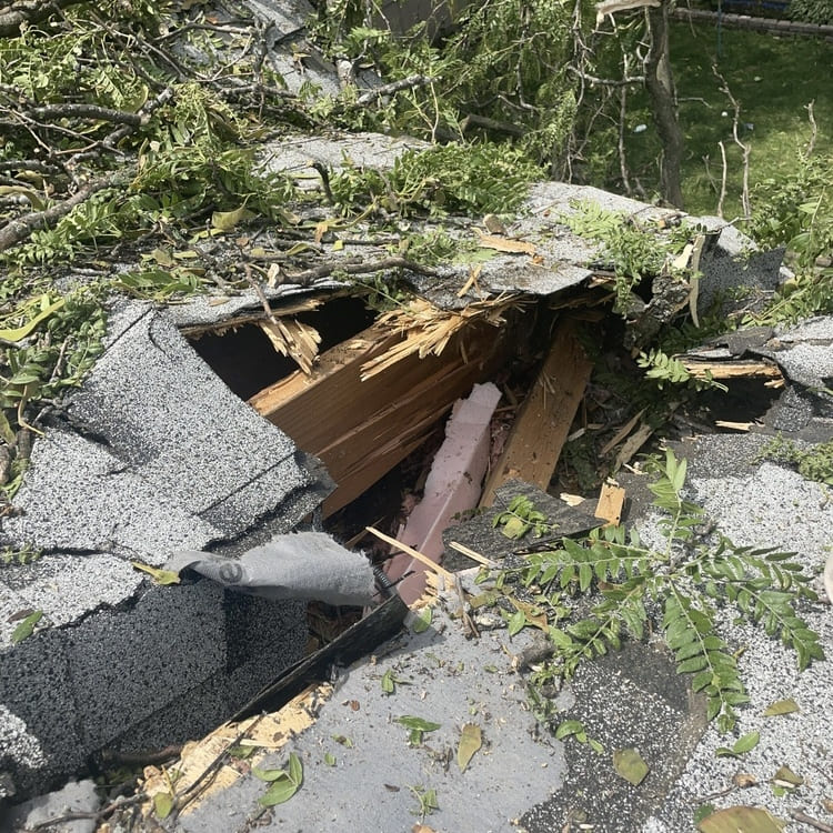 - Fast roof covering. We tarp damaged areas to prevent further losses.